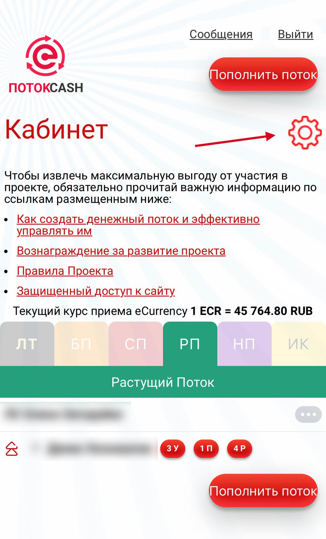 — В личном кабинете нажмите на значок шестеренки (⚙) в правом верхнем углу