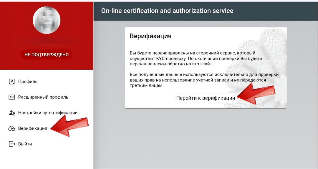 Выбираете раздел «Верификация», затем — «Перейти к верификации»
