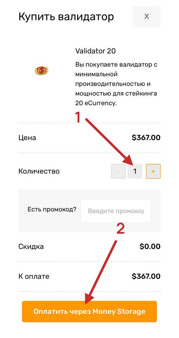 Перед покупкой валидатора у вас должен быть кошелек Money Storage, так как с него будет списываться оплата за валидатор.